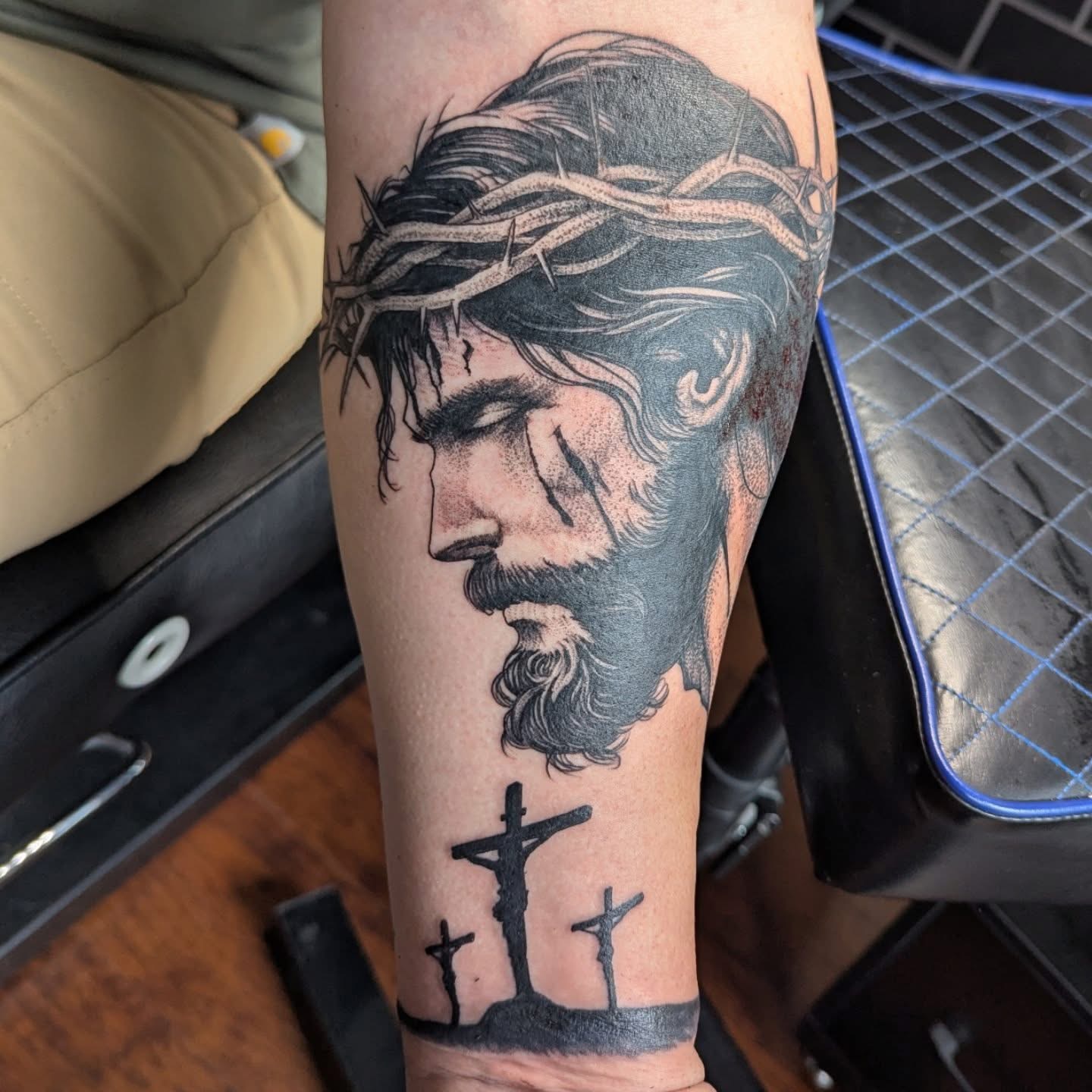 Isaac works with black and grey pigments, color, and cover-ups. He enjoys tattooing patterns, abstract designs, stippling, detailed mandalas, and sacred geometry, and is always willing to take on a new geometric dotwork design. In his free time, he thoroughly enjoys painting miniature figurines and spending time with his wife and two children.